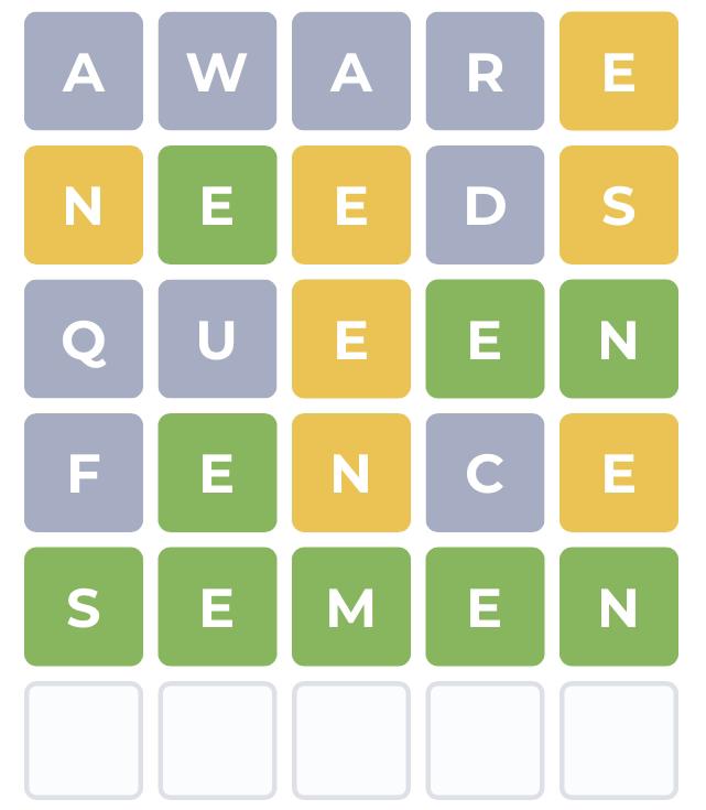 It gives you three different colors if you get a letter in the right spot itโs green, if the letter isnโt in the word at all it turns black and if the letter is in the word but not in the right place it turns yellow.